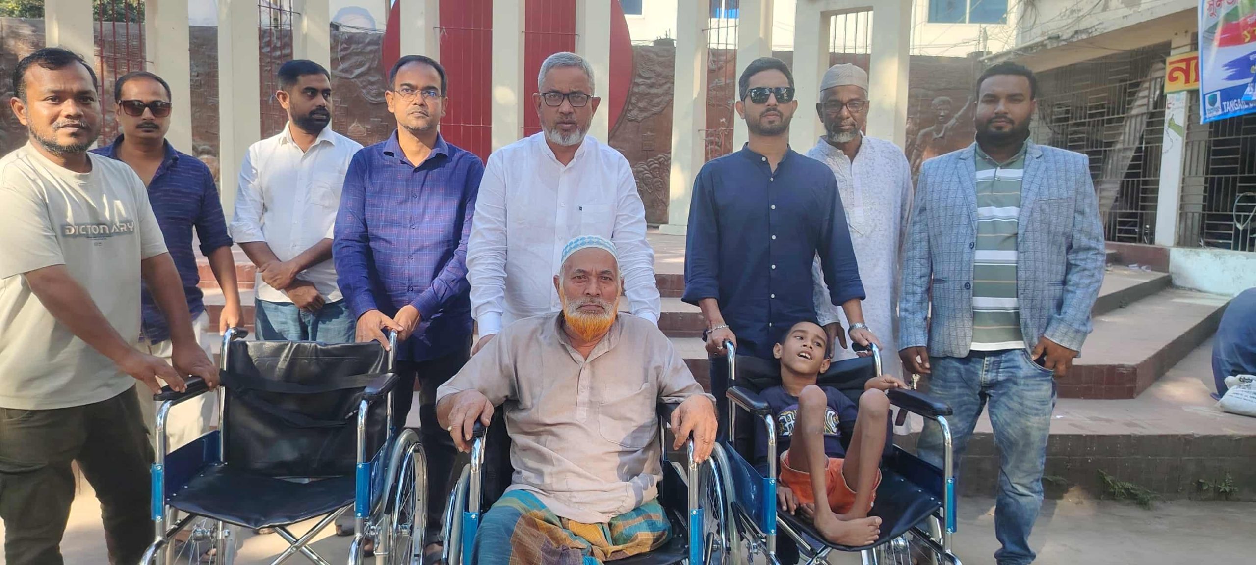 টাঙ্গাইলে সুলতান সালাউদ্দিন টুকুর পক্ষে প্রতিবন্ধীদের মাঝে হুইল চেয়ার বিতরণ।
