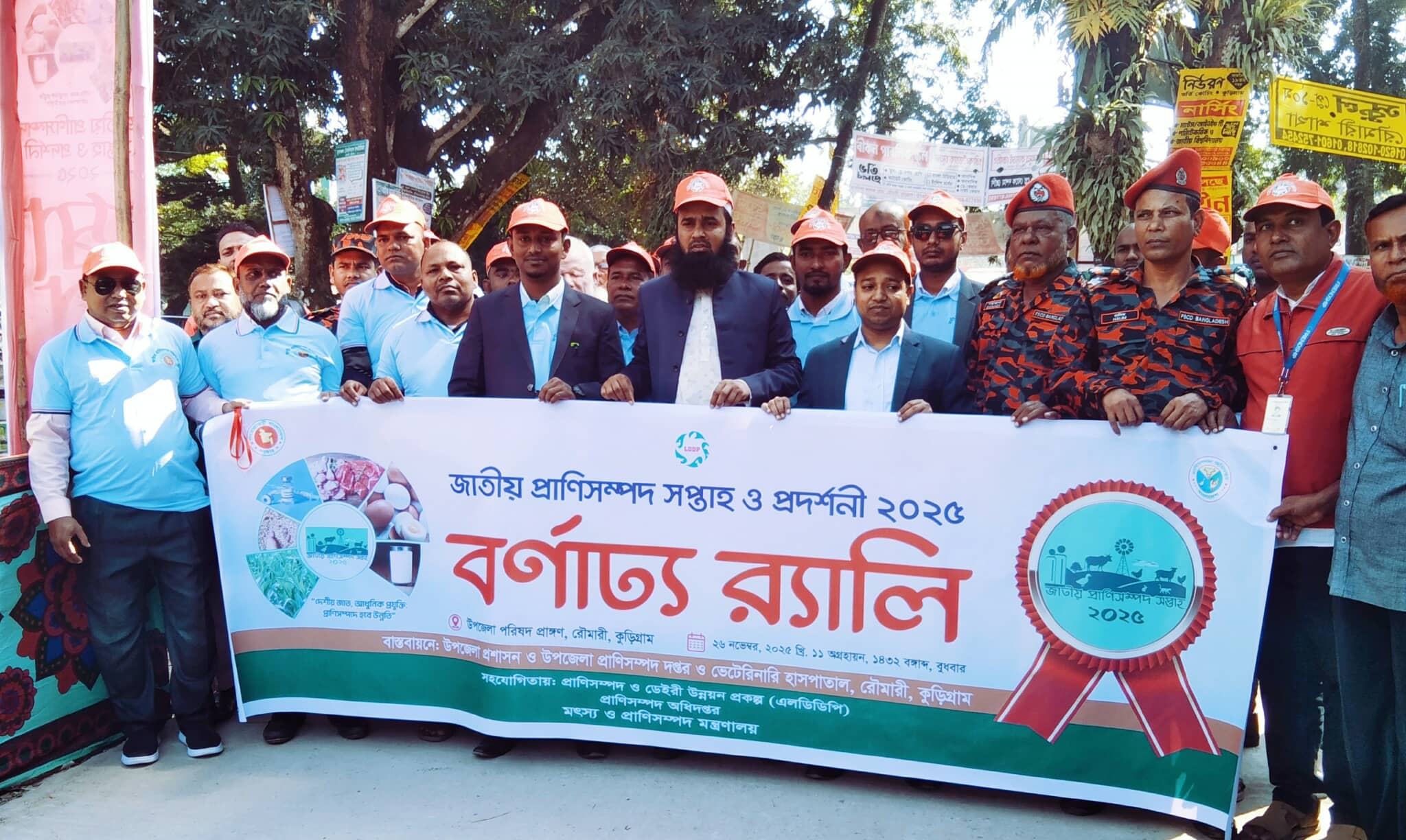 দেশীয় জাত -আধুনিক প্রযুক্তি, প্রাণিসম্পদে হবে উন্নতি” এপ্রতিপাদ্যকে সামনে রেখে, কুড়িগ্রামের রৌমারীতে জাতীয় প্রাণিসম্পদ সপ্তাহ ও প্রদর্শনী শুভ উদ্ভোদন। আজ ২৬ নভেম্বর ২০২৫ বুধবার সকাল ১০টার দিকে বিভিন্ন কর্মসূচি মধ্যে দিয়ে উপজেলা চত্তরে শুভ উদ্ভোদন, র্যালি ও স্টল পরিদর্শন শেষে উপজেলা হলরুমে আলোচনা সভা অনুষ্ঠিত হয়। এসময় প্রধান অতিথি হিসেবে উপস্থিত ছিলেন, উপজেলা নির্বাহী কর্মকর্তা উজ্জ্বল কুমার হালদার, সভায় সভাপতিত্ব করেন, উপজেলা প্রাণীসম্পদ অফিসার মোঃ কামরুজ্জামান পাইকাড়, বিশেষ অতিথি হিসেবে উপস্থিত ছিলেন, উপজেলা কৃষি কর্মকর্তা আব্দুল কাইয়ুম চৌধুরী,বিভিন্ন কর্মসূচির মধ্যে রয়েছে স্টল পরিদর্শন, গবাদিপশু, হাঁস -মুরগির ফ্রি ভ্যাকসিনেশন ক্যাম্প, বিনামূল্যে গবাদিপশু ও হাঁস মুরগির কৃমিনাশক বিতরণ, প্রণিসম্পদ সংশ্লিষ্ট ভ্রাম্যমাণ প্রচারণা, কৃত্রিম প্রজনন সেবা ও ফ্রি ভেটেরিনারি মেডিকেল ক্যাম্প।