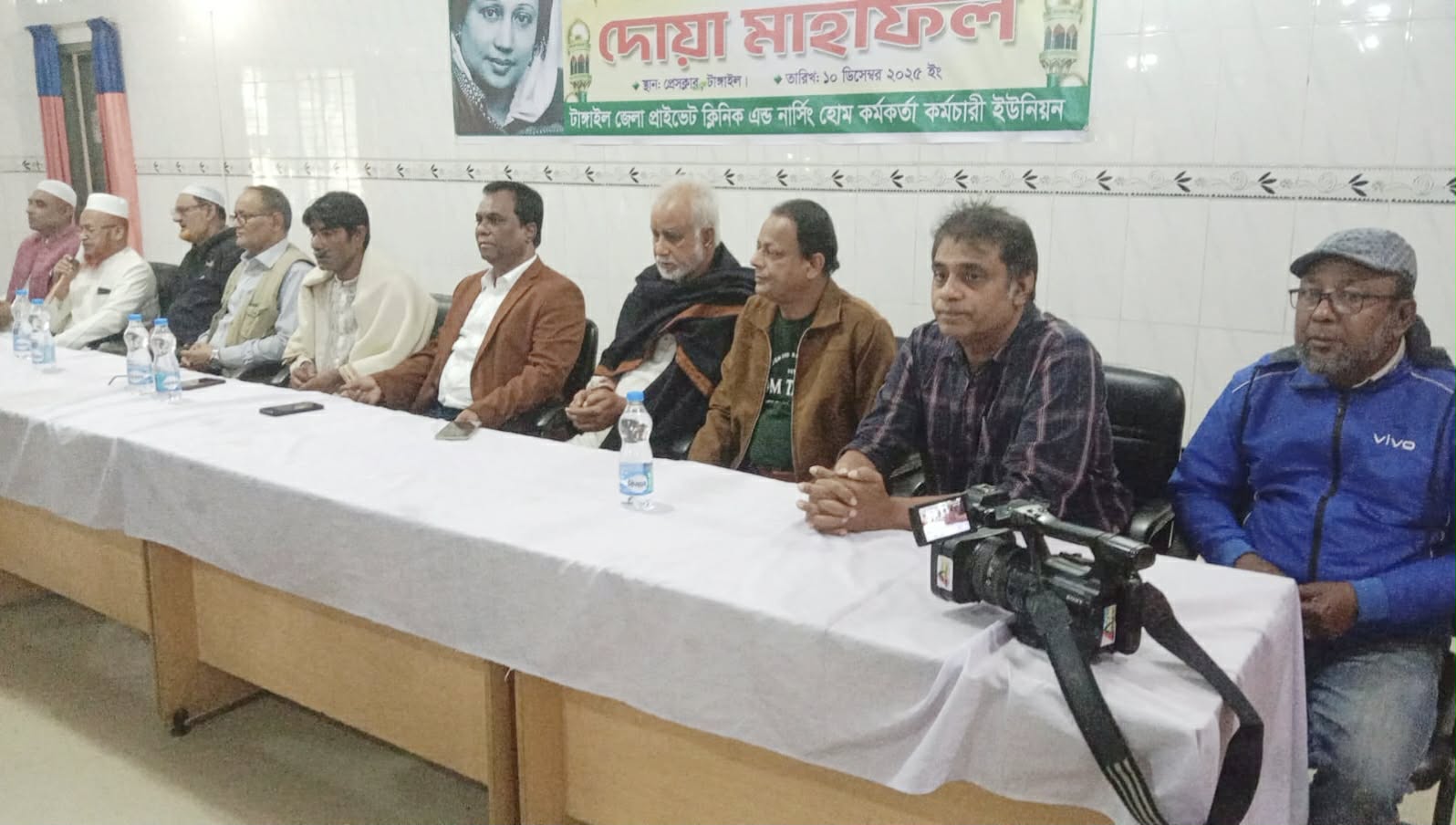 বিএনপি চেয়ারপারসন বেগম খালেদা জিয়ার দ্রুত সুস্থতা কামনায় টাঙ্গাইলে দোয়া ও আলোচনা সভা অনুষ্ঠিত হয়েছে। বুধবার (১০ ডিসেম্বর) সকাল ১১টায় টাঙ্গাইল প্রেসক্লাবের কনফারেন্স রুমে জেলা প্রাইভেট ক্লিনিক অ্যান্ড নার্সিংহোম কর্মকর্তা-কর্মচারী ইউনিয়নের উদ্যোগে এ আয়োজন করা হয়।