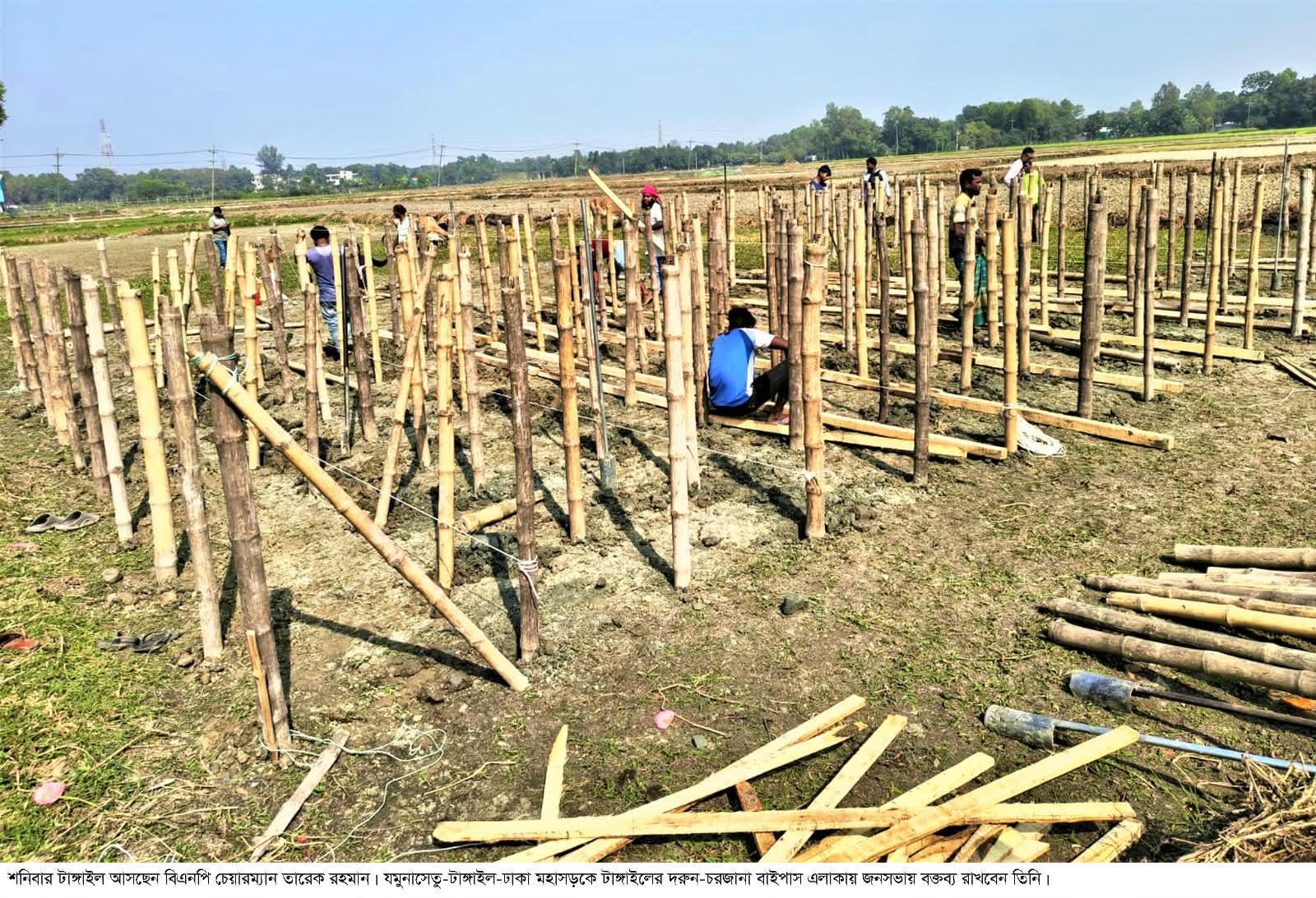 দলীয় সূত্রে জানাগেছে, তারেক রহমানের আগমন উপলক্ষে জনসভাকে জনসমুদ্রে পরিণত করতে ব্যাপক প্রস্তুতি গ্রহণ করেছে জেলা বিএনপি। দলের কেন্দ্রীয় প্রচার সম্পাদক ও টাঙ্গাইল-৫ (সদর) আসনে ধানের শীষের প্রার্থী সুলতান সালাউদ্দিন টুকু জনসভার সার্বিক তদারকি করছেন। ইতোমধ্যে তিনি স্থান নির্ধারণ, একাধিকবার সমাবেশস্থল পরিদর্শন ও নেতাকর্মীদের প্রয়োজনীয় দিকনির্দেশনা দিচ্ছেন। জনসভায় শতাধিক মাইক স্থাপন, সুবিশাল মঞ্চসহ আয়োজনের কোনো ঘাটতি রাখা হচ্ছে না। বৃহস্পতিবার(২৯ জানুয়ারি) রাতে দলীয় নেতাকর্মীদের নিয়ে বিশেষ প্রস্তুতি সভা করা হয়েছে- এতে বিএনপি ও অঙ্গসংগঠনের নেতাকর্মীরা আরও উজ্জীবিত হয়েছেন।