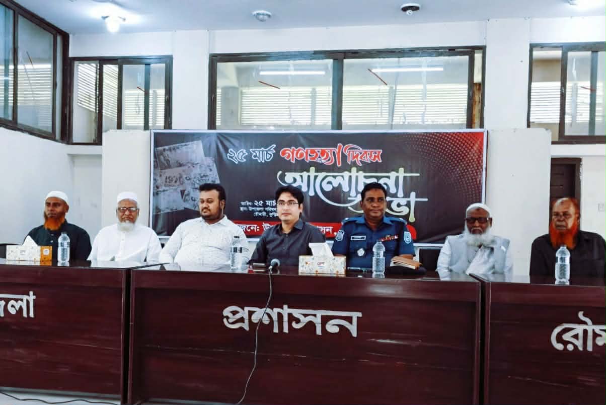 সভায় প্রধান অতিথি হিসেবে বক্তব্য রাখেন রৌমারী উপজেলা নির্বাহী অফিসার মোঃ আলাউদ্দিন মহোদয়। তিনি বলেন, ২৫ মার্চের গণহত্যা বাঙালি জাতির ইতিহাসে এক কালো অধ্যায়। পাকিস্তানি হানাদার বাহিনী সেই রাতে নিরস্ত্র বাঙালির ওপর যে নৃশংস হত্যাযজ্ঞ চালিয়েছিল, তা বিশ্ব ইতিহাসে বিরল হয়ে আছে। তিনি নতুন প্রজন্মকে মুক্তিযুদ্ধের চেতনায় উদ্বুদ্ধ হওয়ার আহ্বান জানান।