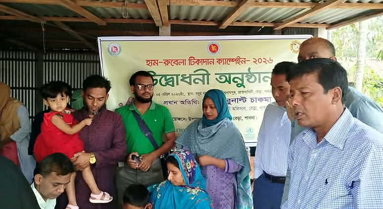 পাবনা জেলায় ব্যাপকভাবে ছড়িয়ে পড়া হাম নিয়ন্ত্রণের লক্ষ্যে সরকারি কর্মসূচির অংশ হিসেবে বেড়া উপজেলা নির্বাহী অফিসার রুনাল্ট চাকমা “হাম-রুবেলা টিকাদান ক্যাম্পেইন ২০২৬”, কর্মসূচির উদ্বোধন করেন।