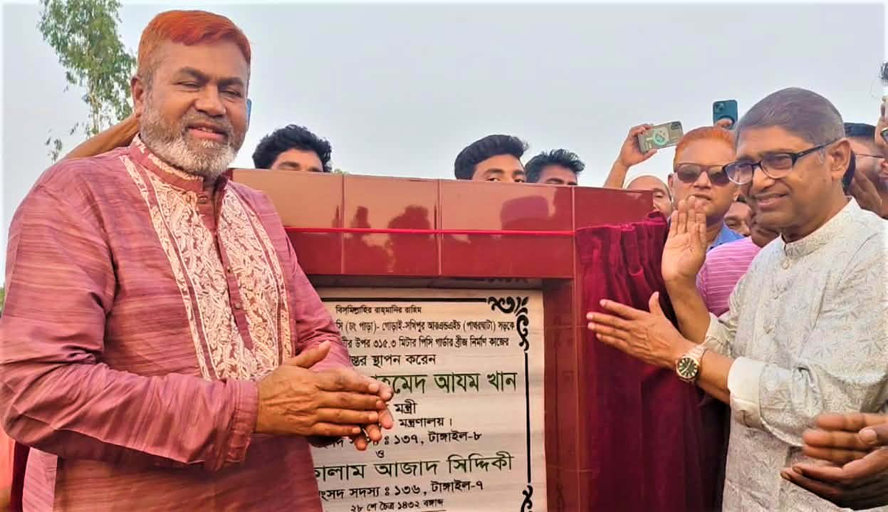 টাঙ্গাইলের বহু প্রতিক্ষিত পাথরঘাটা ব্রিজের ভিত্তিপ্রস্তর স্থাপন।