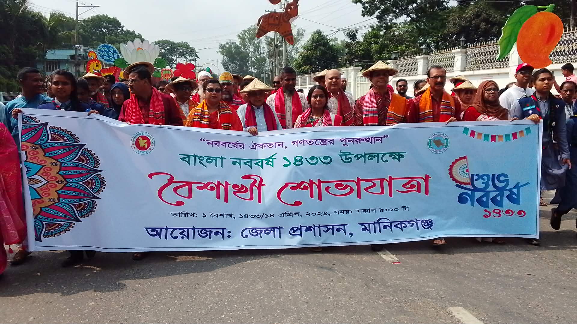 বাংলা নববর্ষ ১৪৩৩-কে স্বাগত জানাতে উৎসবের উচ্ছ্বাসে মুখর হয়ে ওঠে মানিকগঞ্জ। বর্ণিল মঙ্গল শোভাযাত্রা, দিনব্যাপী সাংস্কৃতিক আয়োজন এবং সাত দিনব্যাপী বৈশাখী মেলাকে ঘিরে নতুন বছরের প্রথম দিনটিতে জেলার সর্বত্র ছিল আনন্দ-উদ্দীপনার ছোঁয়া।
