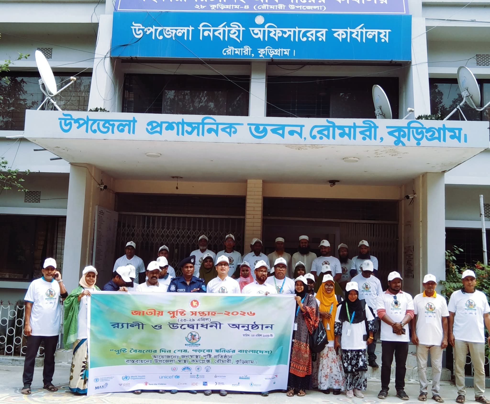 পুষ্টি বৈষম্যের দিন শেষ, গড়বো স্বনির্ভর বাংলাদেশ। এই প্রতিপাদ্যকে সামনে রেখে, কুড়িগ্রামের জেলার রৌমারী উপজেলার স্বাস্থ্য কমপ্লেক্সের উদ্যোগে জাতীয় পুষ্টি সপ্তাহ উদযাপন করা হয়েছে। বৃহস্পতিবার (২৩ এপ্রিল) সকাল সাড়ে ১০ দিকে রৌমারী উপজেলা স্বাস্থ্য কমপ্লেক্স চত্বর থেকে এক র্যালী বের হয়ে উপজেলার প্রধান প্রধান সড়ক প্রদক্ষিণ শেষে হাসপাতাল চত্তরে এসে র্যালি শেষ হয়। পরে উপজেলা স্বাস্থ্য কমপ্লেক্স হল রুমে রৌমারী উপজেলা নির্বাহী অফিসার আলাউদ্দিনের সভাপতিত্বে এক আলোচনা সভা অনুষ্ঠিত হয়।